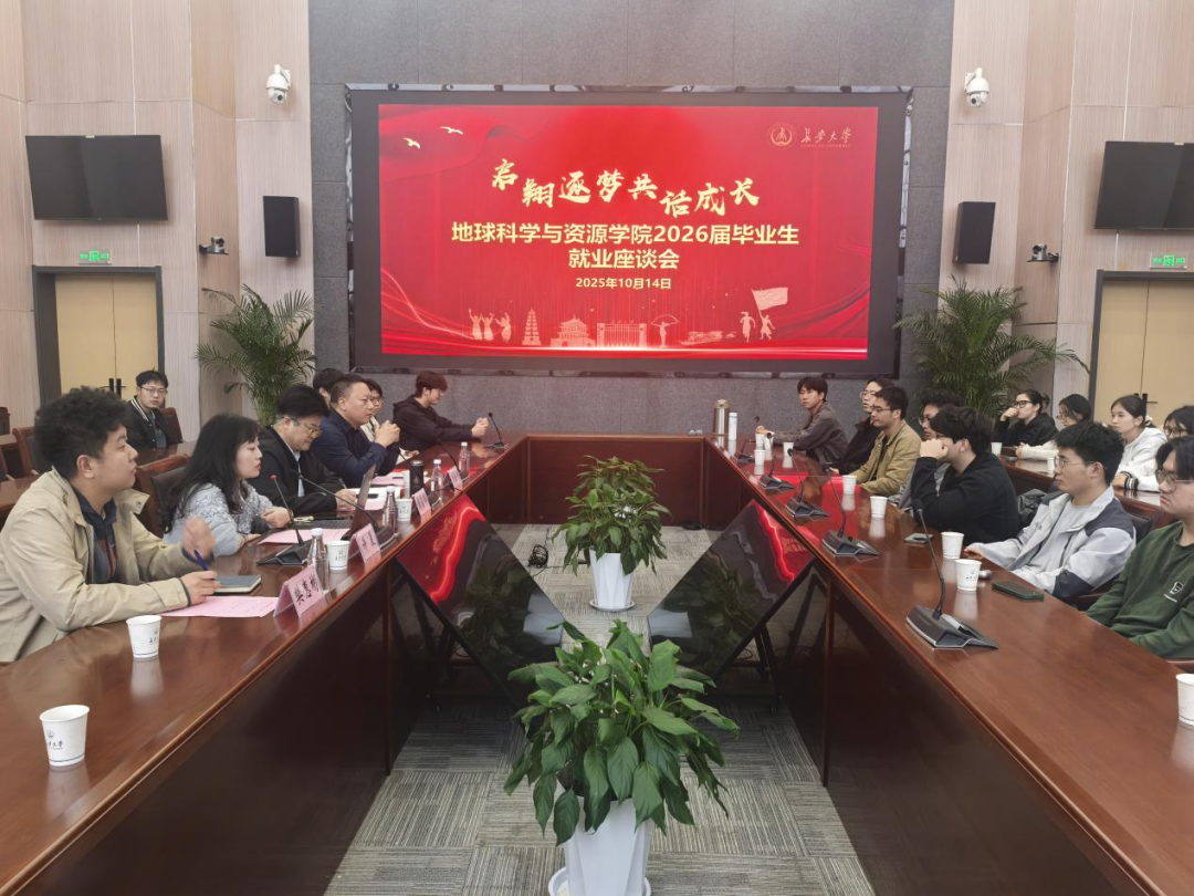 10月14日下午,资源学院顺利举办2026届毕业生就业指导座谈会。资源学院党委书记黄喜锋、党委副书记刘会涛、2022级辅导员樊惠彬及2022级同学参会,学院党委副书记许晨主持。