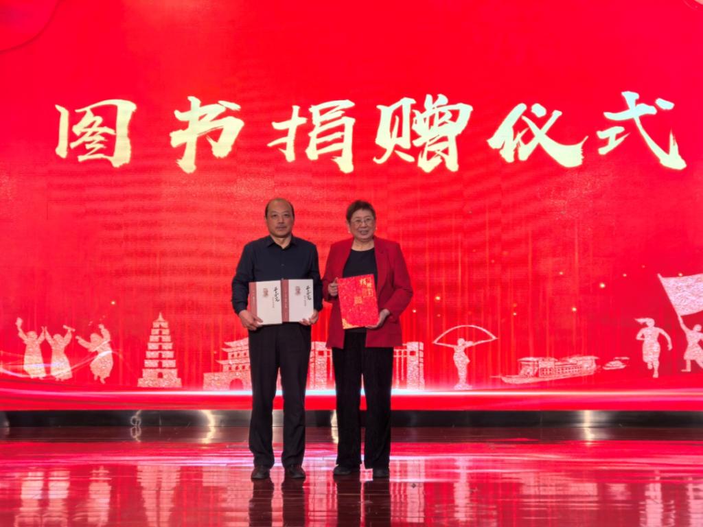 邹宗平向我校捐赠图书,陈鹰代表学校接受捐赠。此次捐赠图书聚焦李四光先生生平事迹与地质学术成果,将进一步丰富我校馆藏资源,为师生学习先辈精神、钻研专业知识提供支撑。