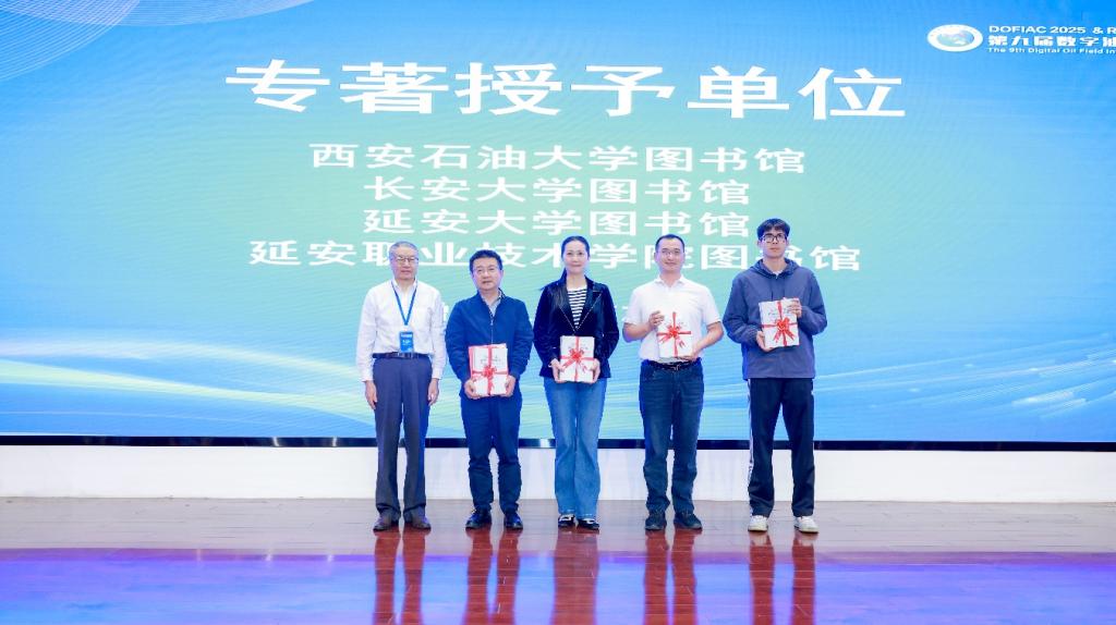 会议期间还举行了高志亮教授专著《数智油气田研究与实践集锦——整合数智油气田基础、应用与创新》的首发仪式。石油工业出版社编辑申正昰表示,该著作系统梳理了我国数智油气田领域20余年的研究成果,为“整合数智油气田学”的学科建构奠定了重要基础。现场向长安大学、西安石油大学等四所高校图书馆赠书,促进了学术资源的传播与共享。