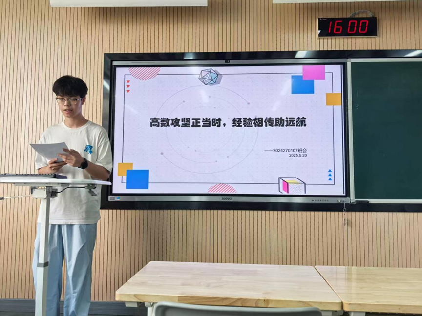 2025年5月20日,资源学院2024级地质学七班在修远2309教室举办了“高数攻坚正当时,经验相传助远航”主题班会,本次班会由班主任李治杭老师主持,全体同学踊跃参与。
