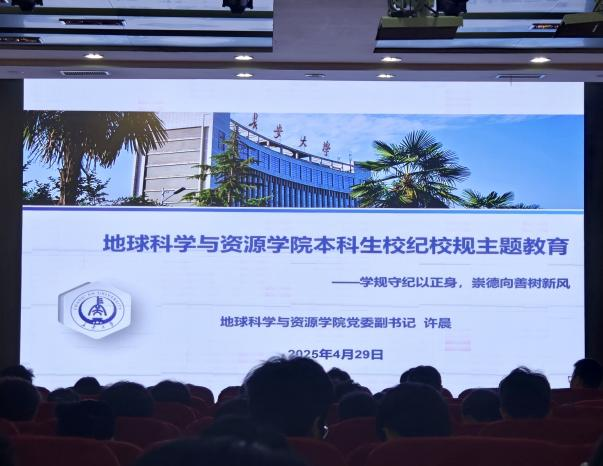 无规矩不成方圆,无制度无以建秩序。为深入学习贯彻党的二十届三中全会和全国教育大会精神,贯彻落实习近平总书记关于教育的重要论述,全面落实新时代立德树人工程,对标推进党纪学习教育常态化长效化、深入贯彻中央八项规定精神学习教育目标要求,资源学院于4月29日晚19:00在北辰楼会议中心二层报告厅举办以“学规守纪以正身,崇德向善树新风”为主题的校规校纪主题教育活动。党委副书记许晨、辅导员张凤、樊惠彬及学院全体本科生参加了活动,活动由学办主任黎皛主持。