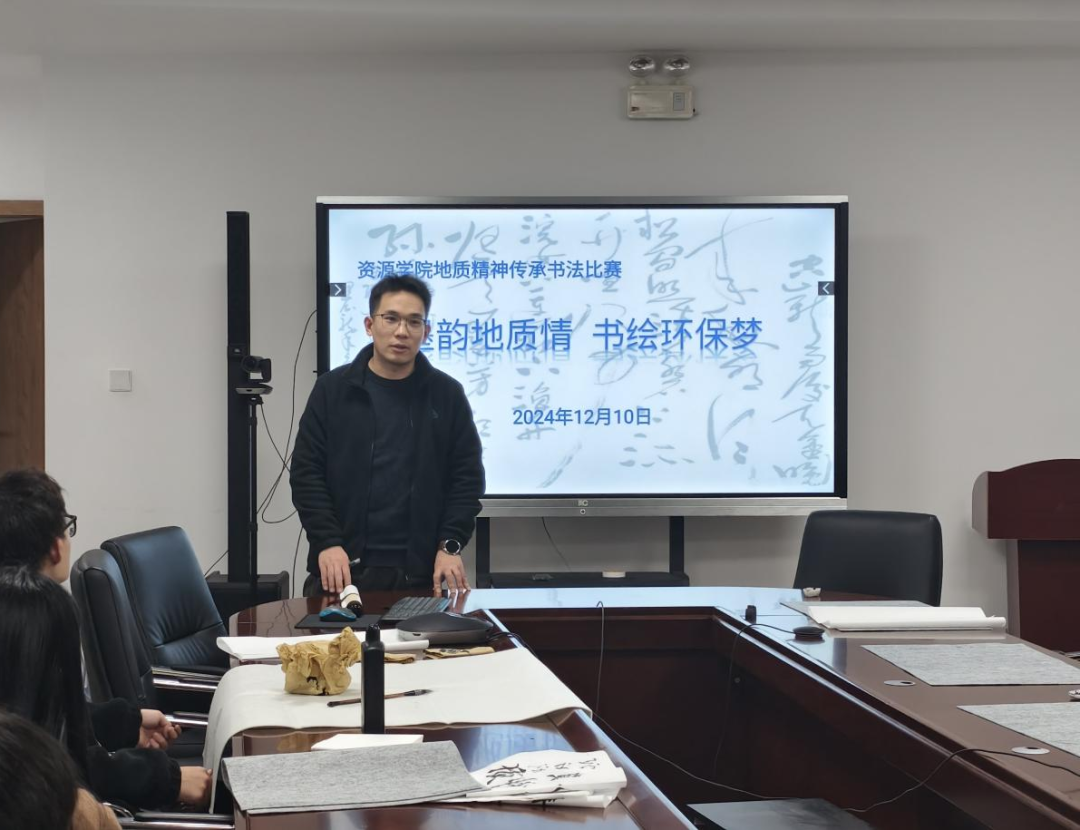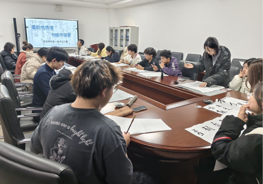 为弘扬地学文化、增强青年学子环保素养,2024年12月10日18时30分,资源学院“墨韵地质情·书绘环保梦”书法比赛在北校区朝晖园学生社区顺利举行。学生社区主任白礼平、学生社区副主任苗行生、学院团委书记巩昌盛、团委副书记张凤、学院科协主席戴旭阳和副主席苏艾拜·买买提依明担任评委。来自全校10余个院系的40名选手参加比赛,冯思嫄主持。