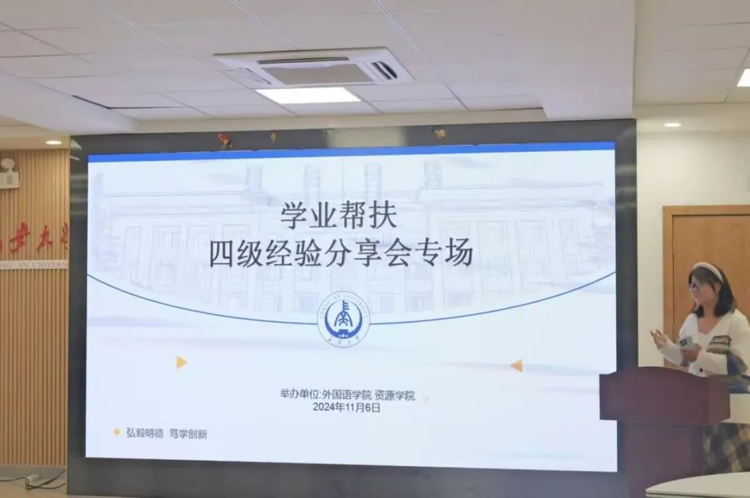 为提升英语四级考试通过率,资源学院于11月6日19:00在东区社区二楼团体活动室开展了“四级学业帮扶”活动。此次活动旨在借助外国语学院优秀学长学姐的丰富经验和专业知识,为资源学院的学生提供精准的备考指导和帮助。外国语学院的段柯柯,田雨鑫,臧贝贝,帅峥受邀出席。