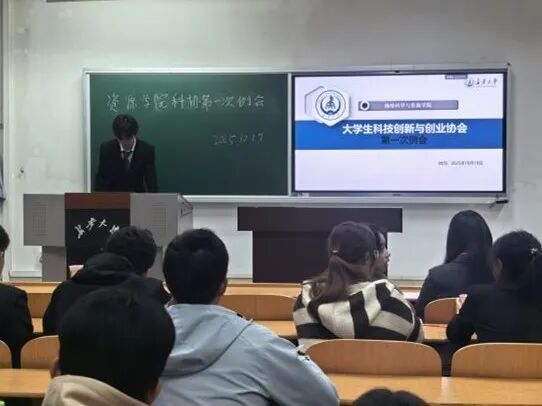 为促进资源学院大学生科技创新与创业协会内部交流协作、欢迎新成员加入、明确各部门工作方向,科协于10月19日在WM1213召开2025—2026学年第一次全体例会。本次例会由科协主席杨瑞主持,科协全体成员参加。
