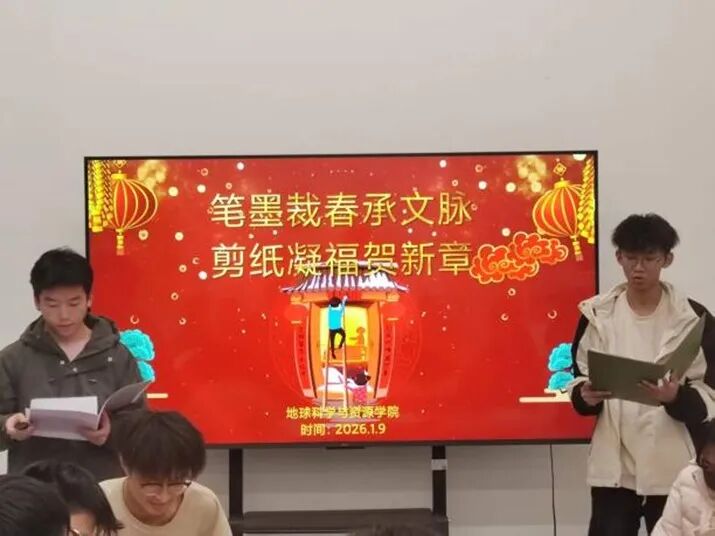 为弘扬中华优秀传统文化,营造喜庆祥和的新年氛围,1月9日,资源学院于鸿渐园团体活动室成功举办“笔墨裁春承文脉,剪纸凝福贺新章”新年剪纸春联书法活动。师生齐聚一堂,通过笔墨丹青与镂月裁云,沉浸式体验传统年俗的深厚魅力。